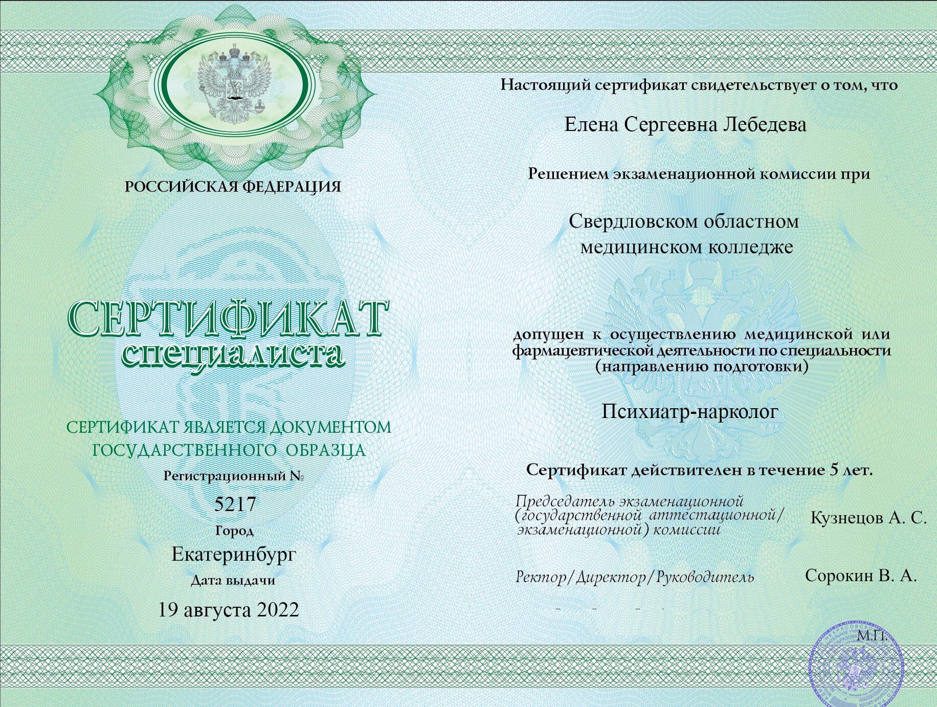 Елена Сергеевна Лебедева врач нарколог клиники доктора Стукаловой в Бийске